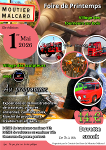 - MOUTIER-MALCARD – 1er Mai toute la journée – Foire de Printemps – Organisée par le Comité des Fêtes