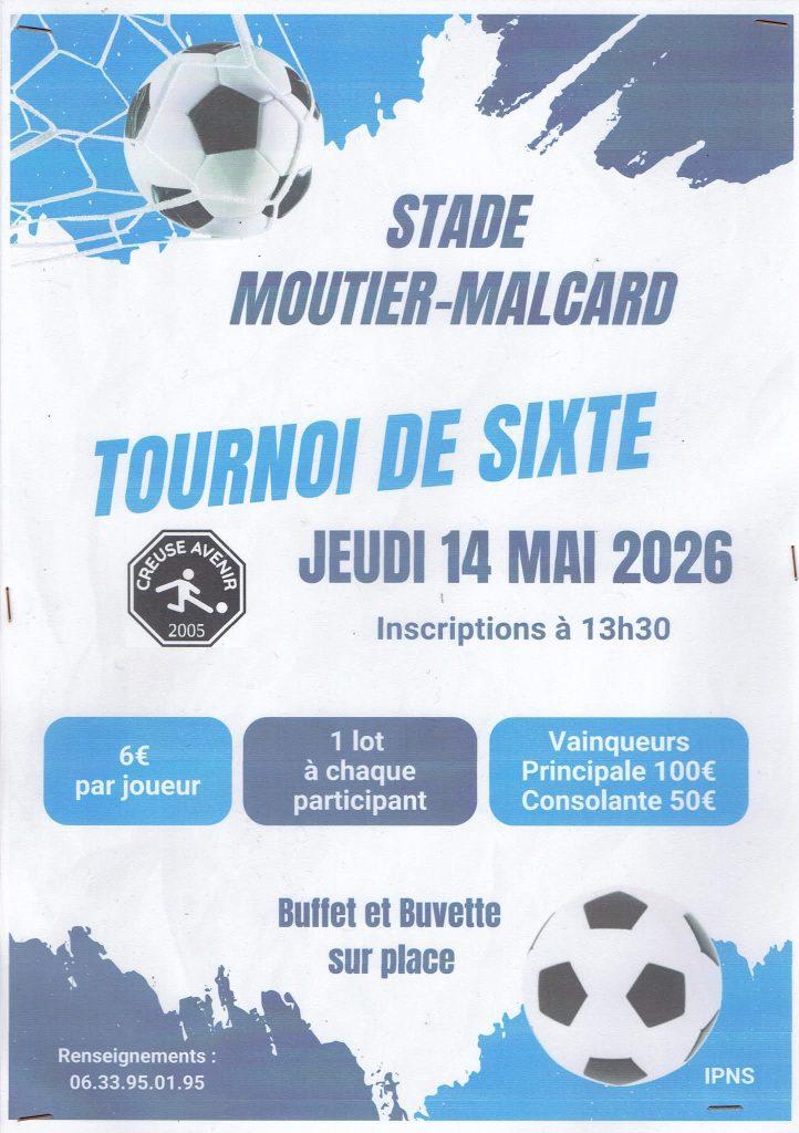 - MOUTIER-MALCARD – 14 mai 13h30 – Stade – Tournoi de Sixte